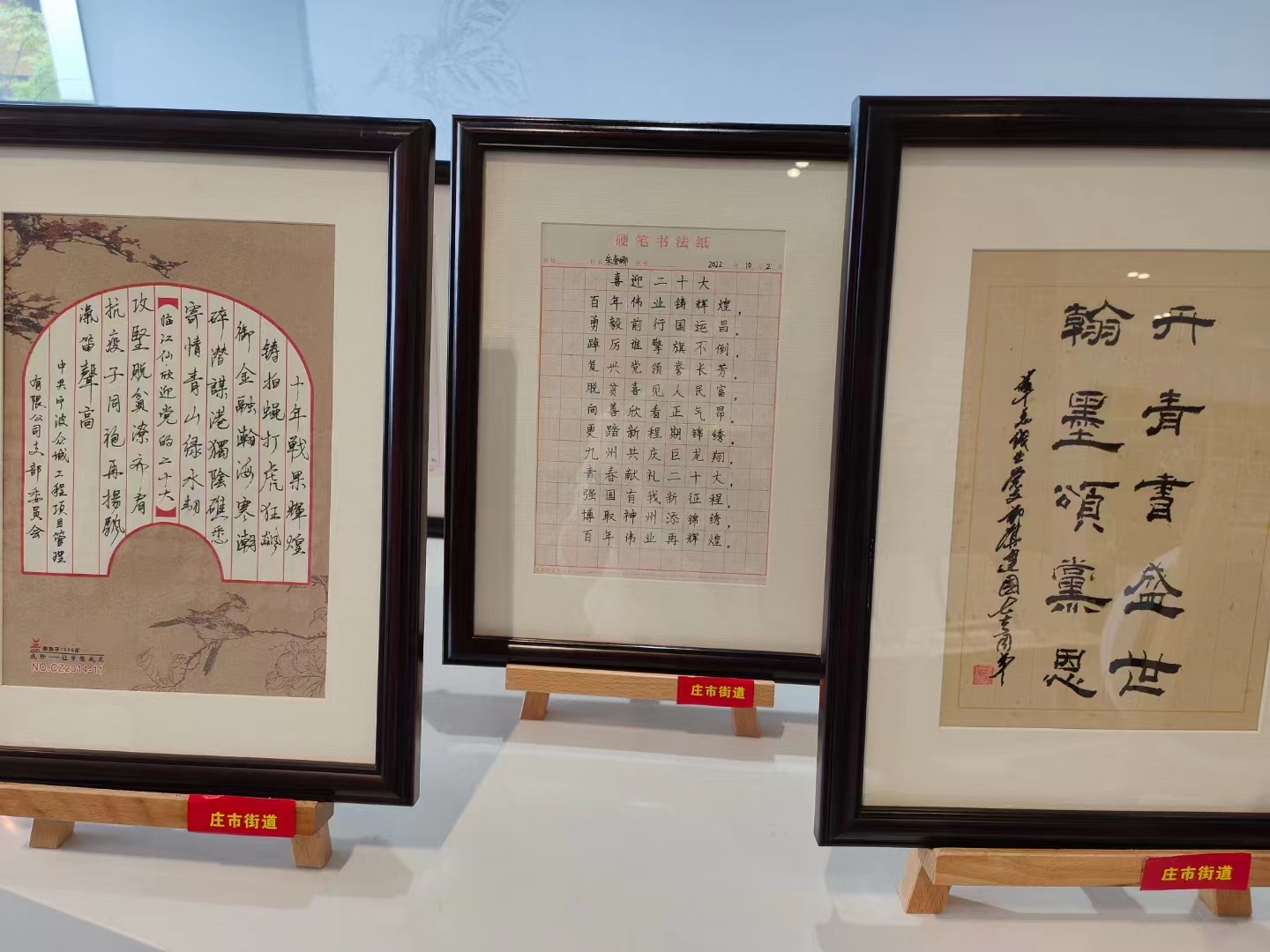 收看完激動(dòng)人心的二十大報(bào)告后,各黨支部負(fù)責(zé)人還參觀了街道組織策劃的各企業(yè)喜迎二十大的書法展覽。這些作品主題鮮明、內(nèi)容豐富、取材廣泛,融時(shí)代性、思想性和藝術(shù)性于一體,熱情謳歌了黨的豐功偉績和祖國的巨大變化,充分表達(dá)了“堅(jiān)定不移跟黨走”的理想信念,全面展現(xiàn)了“腳踏實(shí)地、砥礪前行”的時(shí)代精神風(fēng)貌。