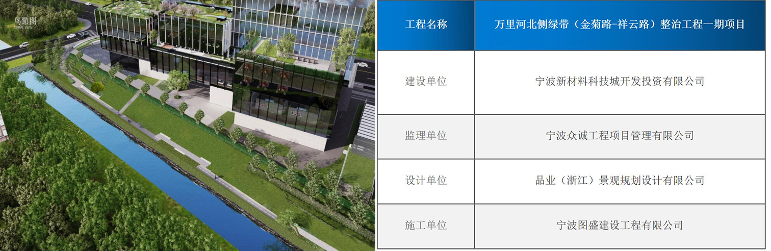 工程位于寧波國(guó)家高新區(qū),主要建設(shè)內(nèi)容包括對(duì)萬(wàn)里河北側(cè)沿河步道、綠化、照明、監(jiān)控及河坎的建設(shè),面積約為2488平方米,長(zhǎng)度約為175米,總投資約為200萬(wàn)元。